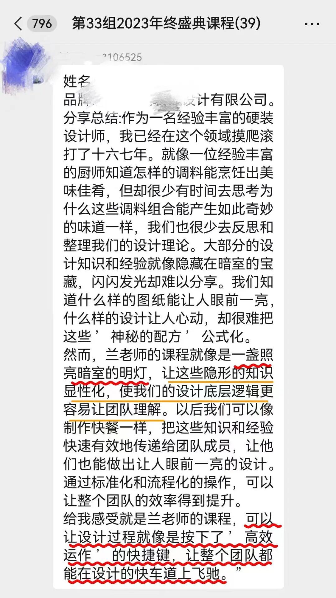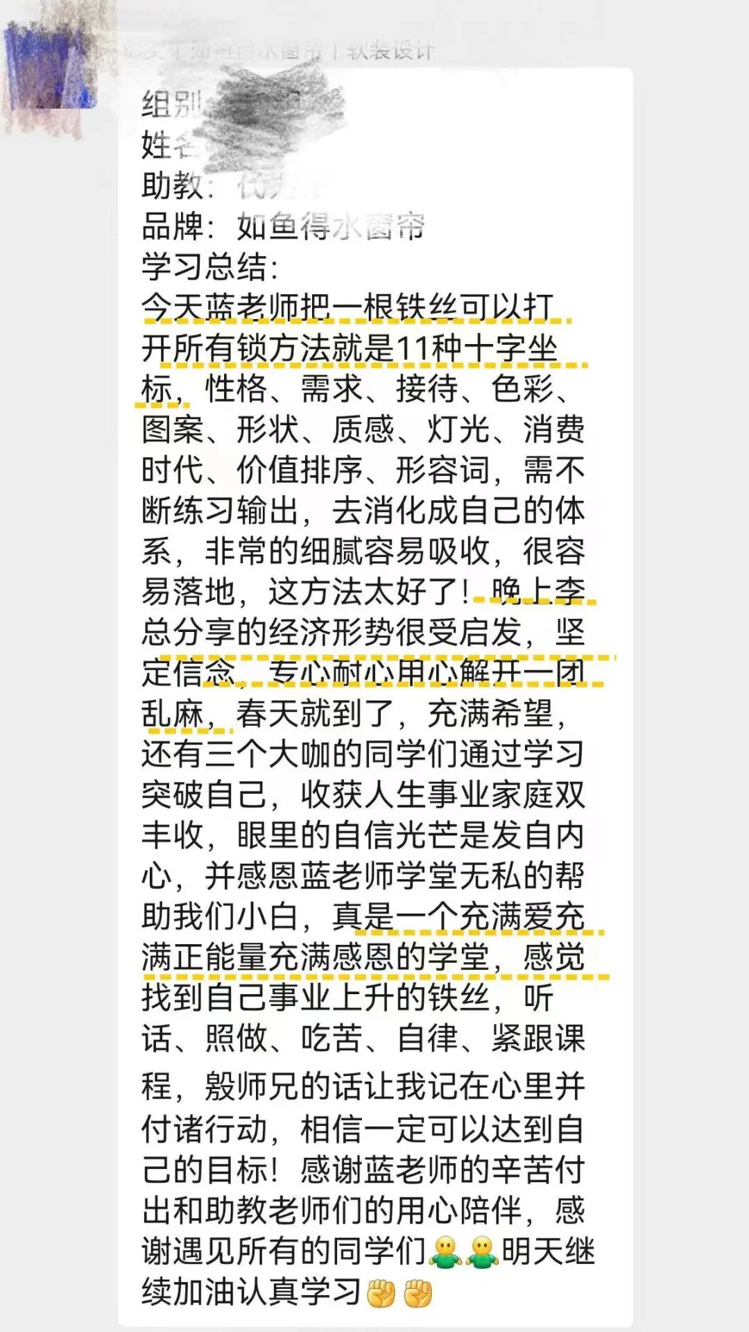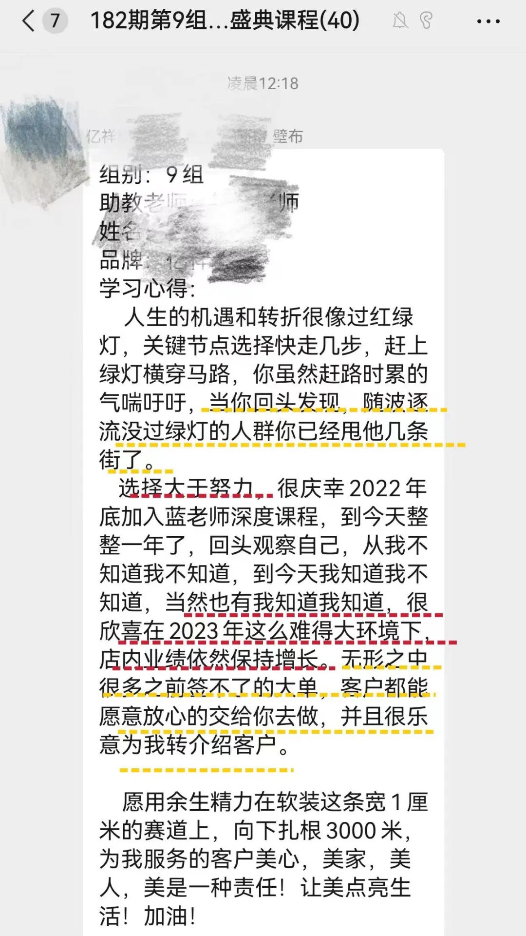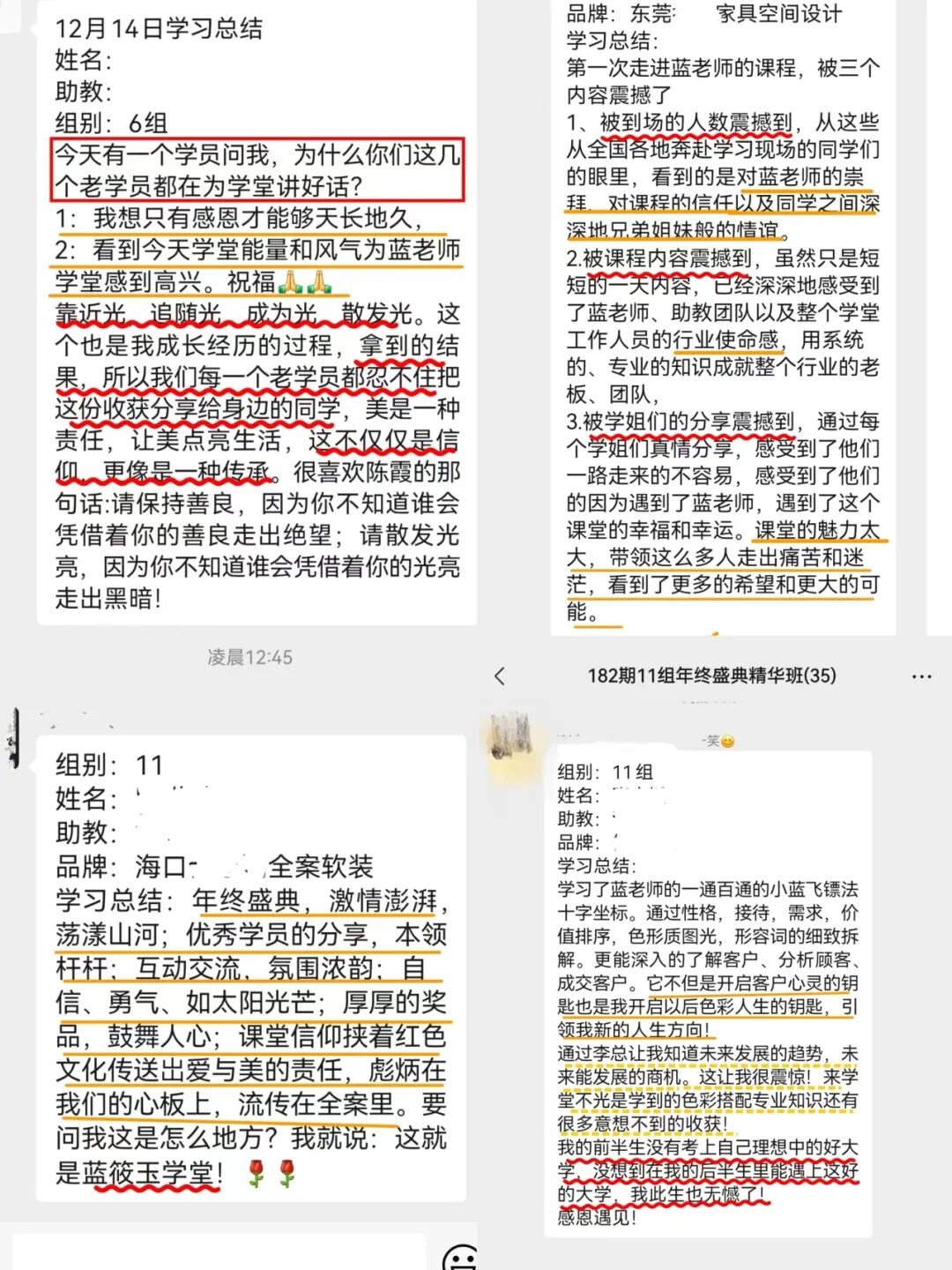 千人汇聚、势在必“燃”,聚势全案再出发!发表时间:2023-12-21 10:35 2023年12月12日-15日,来自五湖四海的一千多位家居建材人,顶着凛冽寒风,带着炽热梦想,跨越千里齐聚杭州。 他们到底为何而来? ![]() 四天三夜的相聚,一张张笑脸阳光灿烂,一次次拥抱热烈真诚,一波波欢呼如同山呼海啸,一阵阵掌声此起彼落、连绵不绝。 ![]() 这样的课堂,叫我怎能不爱!这样的盛会,叫我怎能不喜! ![]() 接下来,请带着你的好奇亦或是疑虑,和小橙一起走进蓝筱玉软装学堂7周年年终盛典精彩现场吧! ![]() 本次年终盛典迎来了蓝老师全新升级的精华班课程。虽然蓝老师的课程已经深受认可,“一直被模仿,从未被超越”,但是蓝老师从未停止课程迭代升级的脚步,每次老学员回来复课,都会觉得充满了惊喜。 ![]() 本次精华班课程,蓝老师从“心、道、器、术”各个角度搭建起了全案设计课程的框架,全程干货不断:快速建立全案思维的全案设计6要素,让设计一通百通的3个设计原点,定准目标、找准产品、提升客户满意度的全案设计5流程……简明易学,学来就能用,让学员懂专业,底气十足。 再配合直击客户欲望和痛点的销售7步法以及让老客户源源不断转介绍的“样板房模式”等销售技巧,让学员善成交,财气满满。 ![]() 课程有内核、有趣味,听得懂、学得会,能复制、易落地,来源于实战,一切为了实战,一切服务实战。 你看学员们听得有多聚精会神、如此津津有味。身处拥挤的千人会场,蓝老师用坚定的语气、优雅的声音娓娓道来,枯燥复杂的专业理论变得有趣简单,各种实操案例顺手拈来,仿佛就发生在学员身上,那么真实和亲切。谈笑自如之间,蓝老师手把手地带领学员突破引流、设计、成交、运营四大难关,让转型全案从此再也不是什么难事! ![]() 年终盛典上登台授课的还有学堂另一位灵魂人物——CEO李总。李总曾经是党政机关处级领导干部,还登上过清华大学讲坛授课,他擅长用专业独到的视角去解读国家政策和行业趋势。 李总一上台就指出,要坚定地看好中国,看好行业,看好自己,为对市场趋势感到迷茫的学员们打了一针有力的强心剂。 ![]() 接着李总用通俗易懂的语言对2023“难的特征”、“难的本质”、“难的趋势”进行了深入剖析,指点了2024知“难”行“易”的方法。 李总还详细解读了促进家居消费的11条措施,指导学员如何寻找机会、打造比较优势、做行业的前20%,并给出了“如何在各个渠道里实施细节创新”等十条具体可行的建议。 ![]() 学员们响起了热烈的掌声,他们在李总精彩的发言里找到了赢战未来的信心和前进的方向。 ![]() 本次年终盛典还举行了隆重的颁奖典礼,一共颁发了软装最佳艺术奖、软装最佳搭配奖、软装最佳美学奖、软装最佳创意奖、设计美学之星五个奖项,对部分取得优异成绩并积极回到学堂为师弟师妹分享经验的优秀学员进行表彰。 他们的成功可谓是来得“既容易又不容易”。他们遵循蓝老师的指引,在正确的道路上发力,进步自然一日千里;同时他们的进步,亦是”梅花香自苦寒来”的真实写照,每一个成功学员的背后都离不开自身孜孜不倦的辛勤努力。 比如学堂明星学员殷同学,就曾经闭关三个月苦练扔色,而如今可以做到无色识人、张口即来。他用12个字总结分享了自己的学习经验:“吃苦自律、听话照做、紧跟课程”。 ![]() 这些优秀的家装人自信从容、充满力量,举手投足间都散发出迷人的魅力和耀眼的光芒。 不仅仅是舞台上的学员,在现场、在蓝筱玉软装学堂,这样的璀璨星辰已汇聚成浩瀚星河,“追随光,靠近光, 成为光 ,散发光!”已成为我们蓝筱玉软装学堂的一种信仰,一种传承,一种磅礴而势不可挡的力量! ![]() 年终盛典第三天,迎来了玉米团“至诚营”的开营仪式。 在会场千人瞩目下,学堂校长、玉米团团长李洪卫用力挥舞着代表着梦想的旗帜,并郑重地把它交到了“至诚营”旗手杨阳手中。 ![]() ![]() ![]() ![]() 全体团员唱响了玉米团团歌《春暖花开》,用歌声诠释了玉米团的精神内核:“如果你需要有人同行,我陪你走到未来....每次怒放,都是心中喷发的爱......”。 旗帜在飞舞、歌声在飘扬、热血在沸腾、信念在燃烧。 ![]() “至诚营”是继“至真营”、“至善营”、“至美营”之后的第四营,它们的名字代表着学堂与玉米团“发心至善、过程至真、结果至美、信念至诚”的人生理念和经营理念。 “至诚营”开营,又一批有理想、有追求的玉米团家人,在李校长蓝老师的带领下扬帆起航,以玉米团为强大后盾奔赴广阔新天地,开启浩荡新征程。 ![]() 在蓝筱玉软装学堂,学习从来不是一件枯燥乏味的苦差事,这里提倡每个人都能快乐地学习成长。请看我们的年终盛典之夜,这群家装人用欢乐的舞蹈放飞了自我,用炽热的激情点燃了寒冷的冬天。 ![]() 除了劲歌热舞,当晚的幸运大抽奖也惊喜连连,让现场欢呼不断,震耳欲聋。 从家装人必备的色卡,到干货满满的学习APP,再到蓝老师李校长双剑合璧一起到店指导的终极梦幻大奖,丰厚的奖品源源不断送出,在场学员们领到了自己的专属惊喜。 在气氛燃爆的同时,盛典现场现场又是那么温暖动情。 来到现场的学员,既怀着一颗求知的心,也怀着一颗感恩的心。不断有学员上台,为蓝老师献上鲜花、锦旗,感恩蓝老师帮助他们实现了事业的突破与家庭关系的改善。 一对夫妻学员,为蓝老